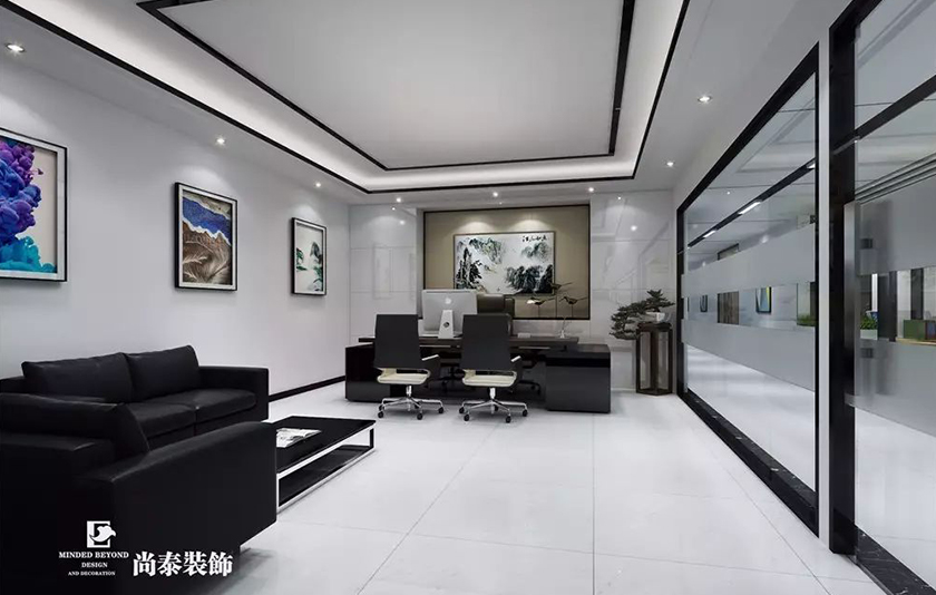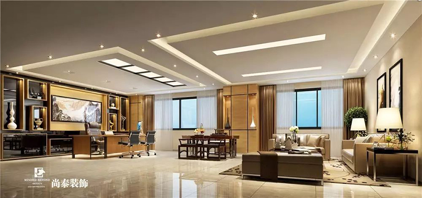董事長辦公室利用中式元素來演繹永不過時、源遠流長的中國文化,內(nèi)設(shè)的接待區(qū)搭配端莊舒適的辦公家具,給客戶賓至如歸的感覺,陶瓷、水墨畫裝飾則給人意想不到的典雅。
