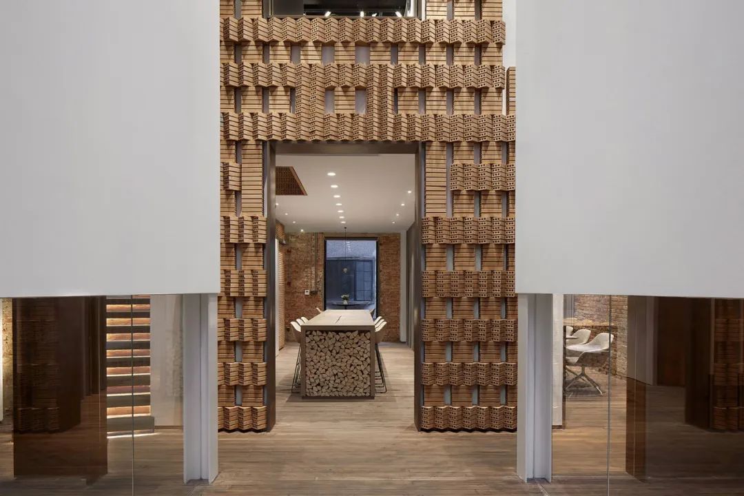 辦公室的磚墻走“清冷”風(fēng),這一處是相對老的磚墻,新老磚墻組合構(gòu)成空間,這種新的表現(xiàn)方式既致敬了老磚墻,又給了空間新的延展性,是一次漂亮的辦公改造設(shè)計,這才是工業(yè)風(fēng)辦公室裝修設(shè)計!辦公室里設(shè)計里,還是有很多人喜歡磚墻設(shè)計的,或許是因為它造價低廉又帶有藝術(shù)氣息,但是大家要知道,磚墻設(shè)計并不只有粗獷的工業(yè)風(fēng)哦!