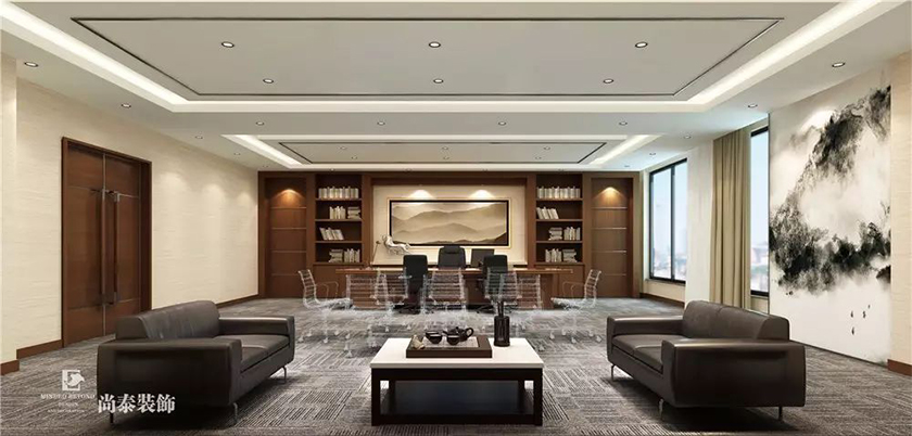 董事長(zhǎng)辦公室則采用新中式風(fēng)格,一幅水墨畫雅致又有韻味,搭配厚重的實(shí)木辦公家具等,盡顯穩(wěn)重氣質(zhì)。