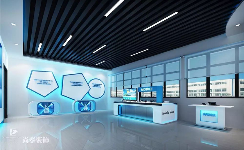 云南美辰科技的展廳同樣讓人過(guò)目不忘,時(shí)尚靈動(dòng)的弧形曲線做造型,配合高科技展示媒體設(shè)備,讓展廳成為產(chǎn)品亮相的最佳舞臺(tái)。