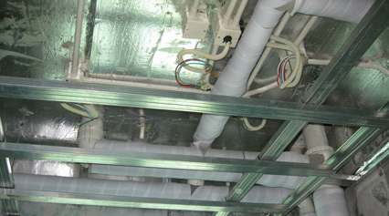 對下水管道使用專業(yè)橡塑板和隔音巖棉等隔音材料包裹,降噪效果