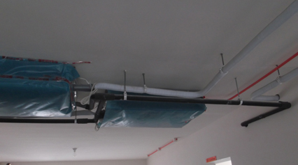 燈槽防塵工藝 吊頂燈槽底部最易積灰(主要是施工粉塵),因此要在施工中加鋪底板,并 在工程完畢后將燈槽內(nèi)積灰清理完畢。 | 中央空調(diào)風(fēng)口防塵保護(hù)工藝 中央空調(diào)安裝后,在之后幾個(gè)月裝修期內(nèi),如果不采取機(jī)體保護(hù),灰塵將大 量的飄進(jìn)風(fēng)口,并通過回風(fēng)循環(huán),造成使用中的室內(nèi)灰塵污染。尚泰作為施 工標(biāo)準(zhǔn)工藝,在中央空調(diào)安裝后,用專業(yè)防塵膜和隔板,對(duì)每一臺(tái)內(nèi)機(jī)嚴(yán)格 保護(hù)。 | |