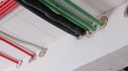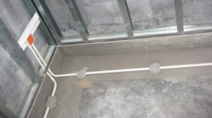 地下室綜合防潮工藝: 尚泰的地下室防潮包括一系列工藝集合:水石膏板隔墻系統(tǒng)、地下室 用材規(guī)定、地下室水電施工規(guī)定、地面防水涂層、地面丙綸卷材防水 施工、木制品離地規(guī)定……主要針對地下室墻、地部的潮氣而進(jìn)行阻 隔,確保實(shí)際使用中的良好體驗(yàn) | 隔墻底座防潮工藝: 在濕區(qū)進(jìn)行輕質(zhì)隔墻施工時(shí),為阻隔地面濕氣對隔墻的影響,采取地面混凝土止水帶工藝,并采用鍍鋅輕鋼龍骨作為隔墻基層,確保墻體無霉變與乳膠漆脫落 | |