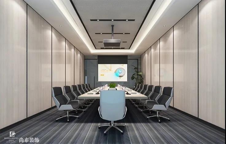 會議內(nèi)部,設(shè)計師大膽地運用線條,天花、墻面、地毯都輔以黑色的線條元素,在視覺上延伸整個空間,層次感更豐富,簡潔而時尚。