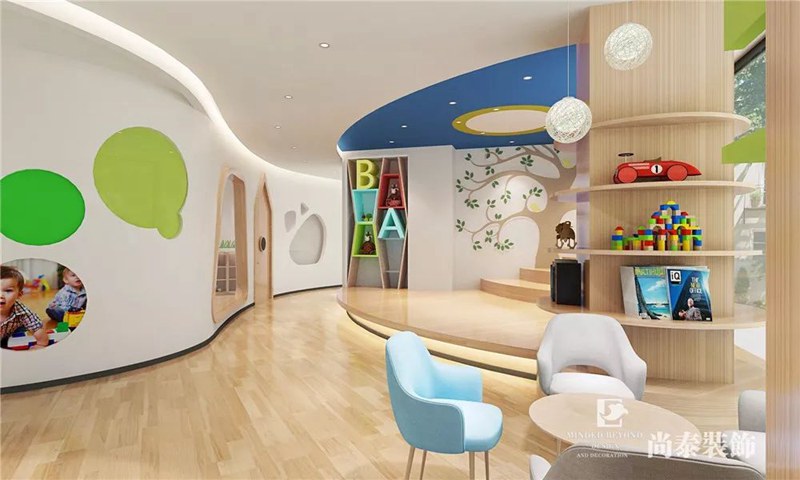 在富有藝術(shù)構(gòu)造的空間格局妝點(diǎn)五彩繽紛的環(huán)保乳膠漆,于簡(jiǎn)潔實(shí)用融入藝術(shù)的內(nèi)涵,加上適應(yīng)兒童生理與心理特征的家具與配飾,為孩子們營(yíng)造了無微不至的關(guān)懷及家庭般的氛圍。
