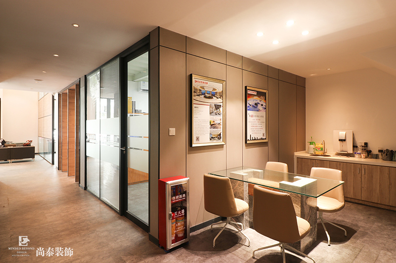 茶水區(qū),可以說是任何一個辦公室裝修設計都不能夠落下的,簡潔而簡單,整體暖色調的襯托,給員工一種坐下了就不想再動的感覺。