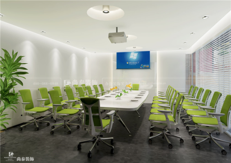 尚泰裝飾對(duì)朵唯會(huì)議室的主墻,以凸面墻為依襯,突出墻面的層次效果。明亮的會(huì)議室,簡(jiǎn)約的純凈色調(diào),給人以無(wú)限的暢游空間。