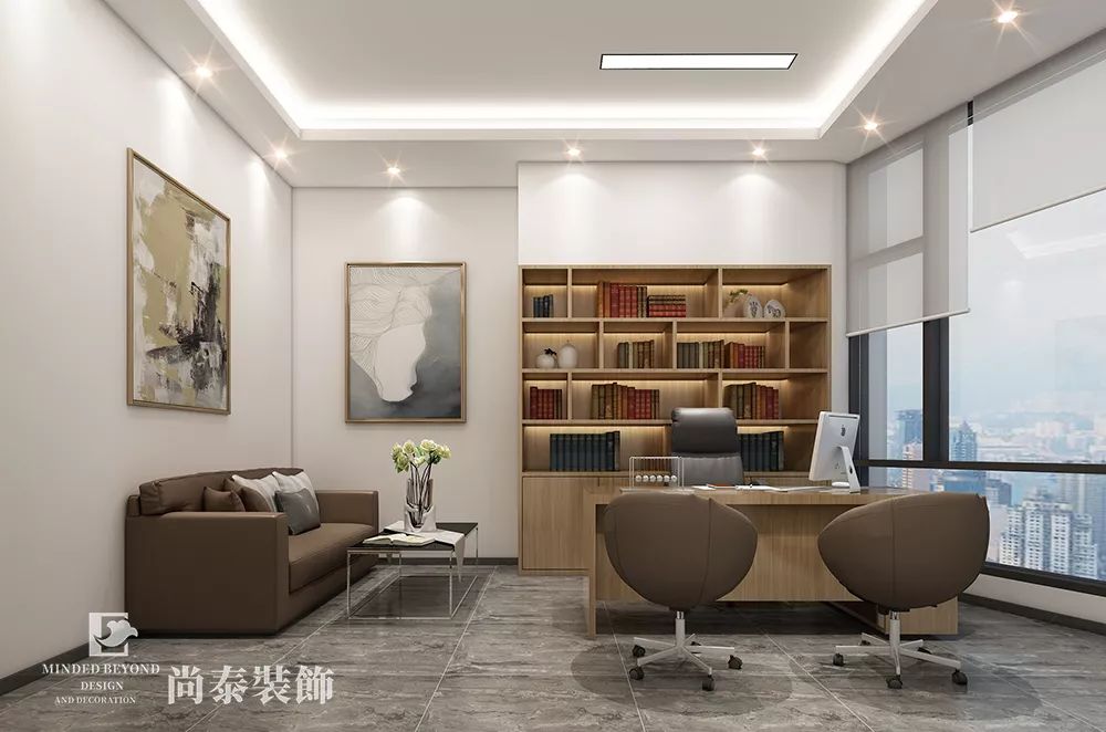 董事長辦公室的設(shè)計與其他區(qū)域的設(shè)計是相連的,天花板設(shè)計連接了會議室,地板與其他區(qū)域均采用了大理石材質(zhì)。室內(nèi)的布置都側(cè)重于空間合理規(guī)劃的實用性及功能性。
