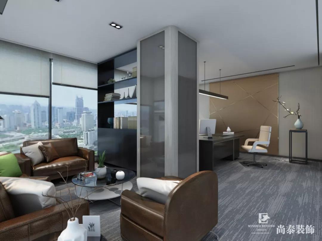 領(lǐng)導(dǎo)辦公室為了體現(xiàn)企業(yè)的商務(wù)性質(zhì),主題設(shè)計偏現(xiàn)代商務(wù)風(fēng)格,空間明亮、干凈、簡約、淡雅、不花哨,搭配亮棕色的皮質(zhì)沙發(fā)盡顯商務(wù)的沉穩(wěn)。