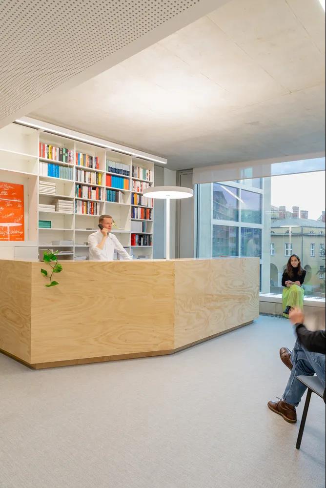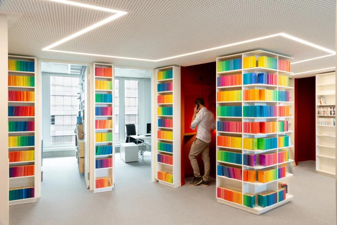 你有多久沒(méi)看過(guò)一本紙質(zhì)書(shū)了?盡管處于網(wǎng)絡(luò)信息發(fā)達(dá)的現(xiàn)代,仍然有很多人對(duì)紙質(zhì)的書(shū)本情有獨(dú)鐘?;蛟S是真實(shí)觸感相比起冷冰冰的屏幕,要更讓人溫暖一些。在德國(guó)柏林的Suhrkamp Verlag出版社辦公室設(shè)計(jì)以書(shū)為體塊展開(kāi),使其無(wú)需依賴(lài)其他的裝飾元素。書(shū)便是整個(gè)出版社辦公空間里最重要的裝飾品,這實(shí)在是再貼切不過(guò)了。