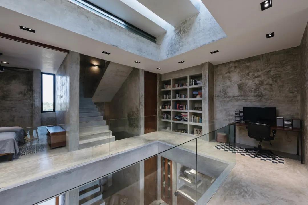 來到這里是一個中庭般的水泥色空間,一個簡單的混凝土空間,設(shè)計將一面墻壁用作辦公空間使用,微妙的自然光從天井上照射進(jìn)來。建筑的紋理和質(zhì)感能讓人保持冷靜和清醒,空間內(nèi)的裝飾也比較地少和簡單,和空間質(zhì)感交流形成一種工藝的品味。