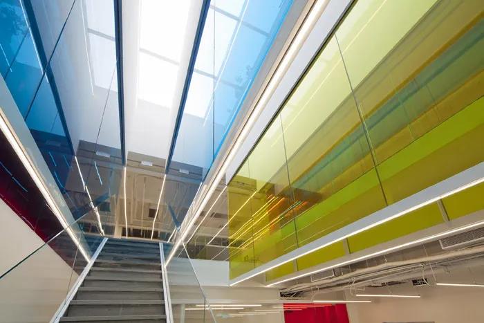 城市是光彩交錯(cuò)的空間,越到夜里越能領(lǐng)略到那些彩色的光影,給這座城市增添了多少魅力。曾想過把這些彩色的光影帶到室內(nèi),無論多暗淡的空間大抵都會(huì)變得活潑絢爛了。下面小編分享一個(gè)彩色的光影辦公室設(shè)計(jì)圖片案例,彩色玻璃+光線的設(shè)計(jì),不似霓虹燈的“羈傲不遜”,而是非常“正面”地把辦公室點(diǎn)亮。