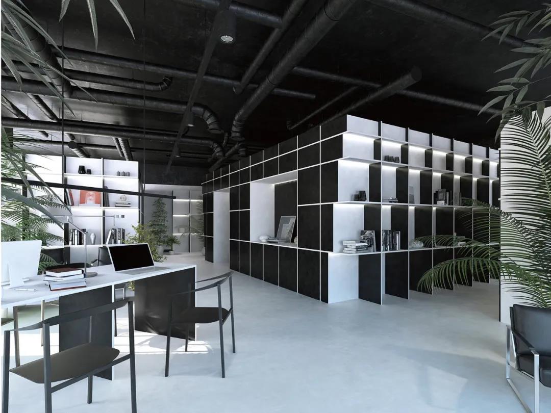 這是一個小型辦公空間,很多初創(chuàng)型的具備創(chuàng)新性的公司都很適合這種辦公室??臻g不僅包括了辦公和休息等功能,還有儲存功能。設(shè)計師把儲存的功能規(guī)劃到特定的區(qū)域——黑白格子置物墻,實現(xiàn)儲存功能的同時,還帶有一種展示觀賞性質(zhì)在里面。線條旋律感很強。