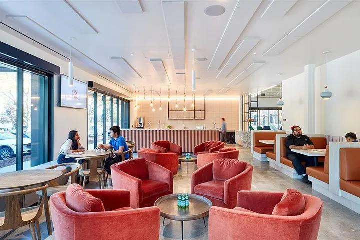 設(shè)計(jì)師致力于創(chuàng)建一個(gè)“親切、包容、真我”的舒適辦公環(huán)境,功能區(qū)包括一個(gè)大型咖啡廳、咖啡吧、健康工作室和游戲室等,通過對多元化的空間創(chuàng)建,讓員工能夠自由選擇安靜的工作、協(xié)作、社交和個(gè)人獨(dú)處的空間。整體設(shè)計(jì)旨在鼓勵(lì)員工在整個(gè)空間內(nèi)移動工作,以找到最適合其工作需求和個(gè)人風(fēng)格的工作場景。