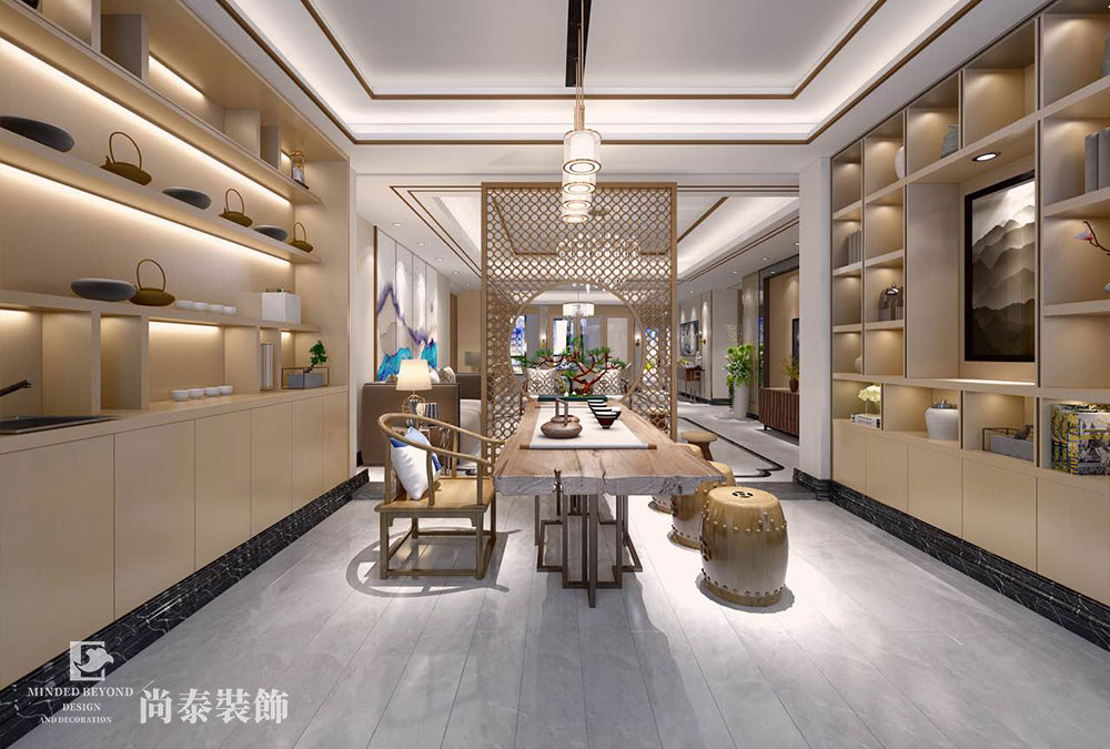 茶室是業(yè)主特別提到的地方。以后的退休生涯,呆的最多的地方就是這間茶室啦。定制藝術(shù)屏風(fēng)穿插茶臺(tái)之間擺上一盆喜愛的盆栽擺件,品上一壺好茶,讀書,品茶,看看遠(yuǎn)處山景,愜意,美哉?。?/span>