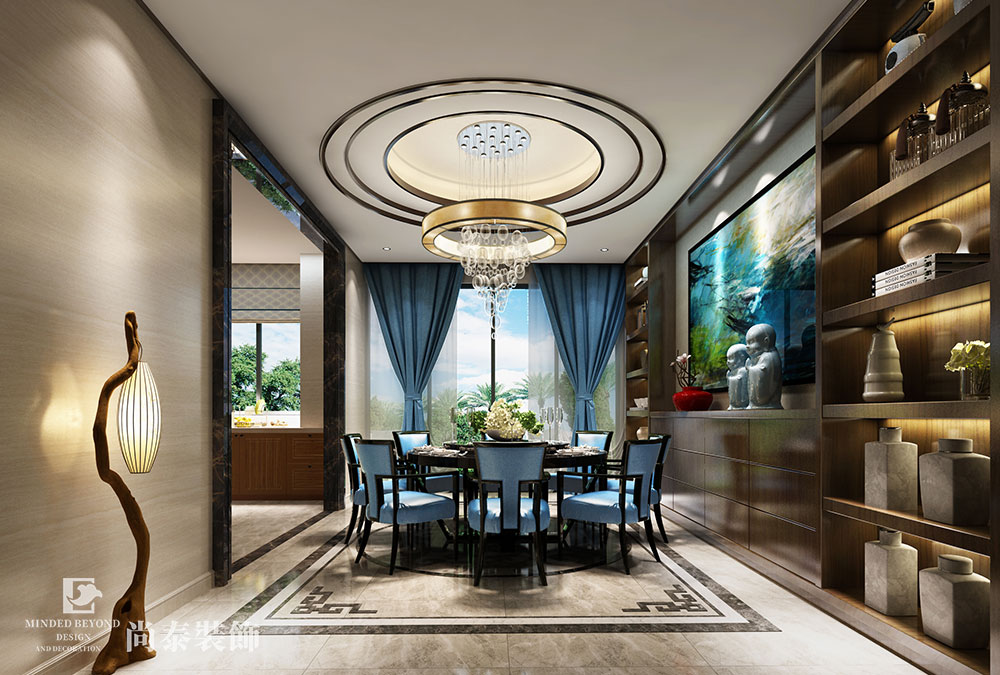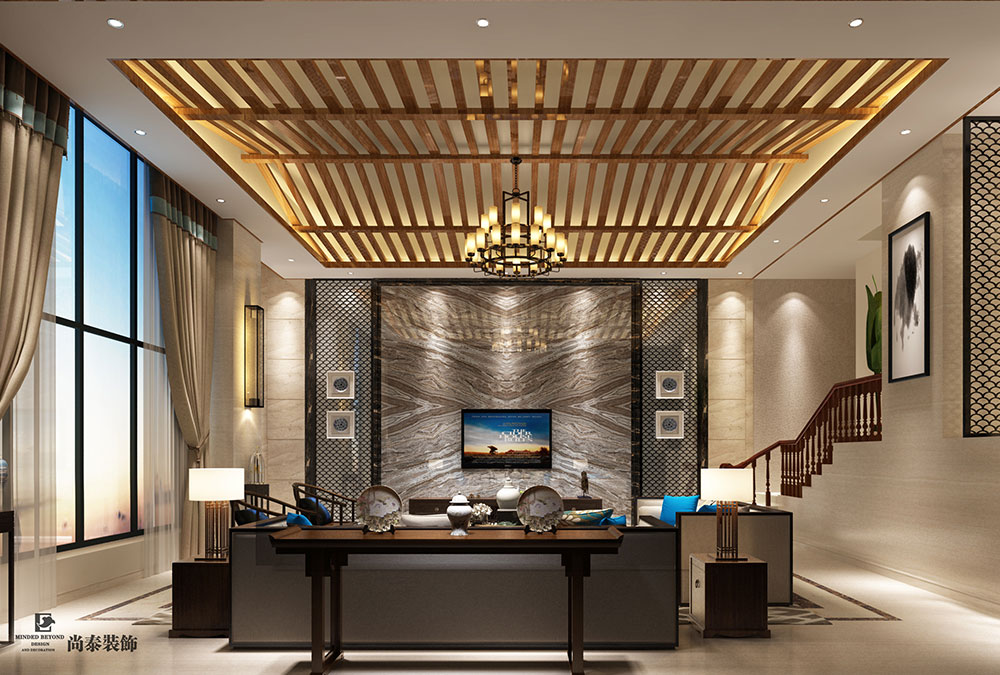 這是一套新中式的別墅裝修設(shè)計(jì)作品,由深圳裝修公司尚泰裝飾集團(tuán)設(shè)計(jì)團(tuán)隊(duì)擔(dān)綱設(shè)計(jì)。