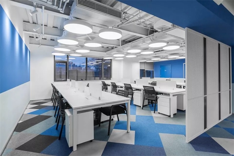 縱觀整個設(shè)計,都在嘗試對傳統(tǒng)的辦公方式帶來改變,創(chuàng)造一個嶄新愉悅的工作體驗。依據(jù)場地的條件,以及體現(xiàn)企業(yè)文化和對員工的關(guān)懷,優(yōu)先保證各個部門擁有最佳的采光、通風(fēng)和視野,員工辦公區(qū)域設(shè)置在靠窗的位置,不同部門與部門之間原則上根據(jù)樓層和柱位進(jìn)行劃分。其余的功能區(qū)塊,如洽談區(qū)、小會議室、打印室以及電話亭等,也沒有按照普通的做法排列在靠墻的位置,而是看似隨意的點綴在大空間的中間,這是有意的將原本規(guī)整的空間利用這些輔助功能加以劃分,盡可能的消除開放式辦公環(huán)境帶來的私密性的缺失,使得辦公環(huán)境動靜結(jié)合。