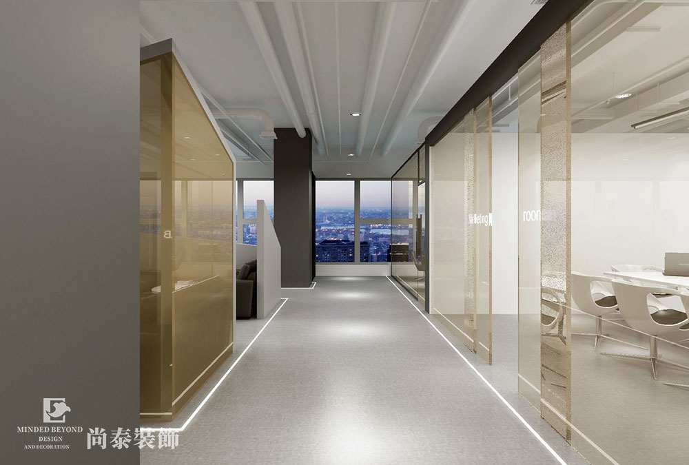本案設(shè)計由深圳辦公室裝修公司尚泰裝飾集團設(shè)計團隊打造,整體主以極簡黑白灰色調(diào)穿插空間,給人以沉穩(wěn)明快之感,配以工業(yè)風水泥磚,提升空間質(zhì)感。
