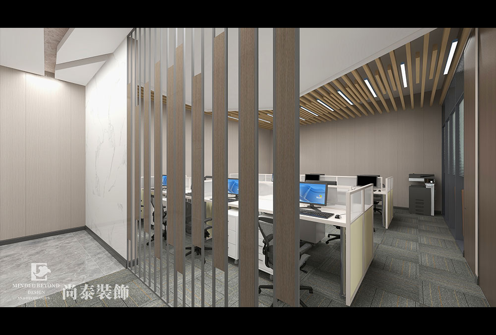 本案面積不大,功能區(qū)劃分為經(jīng)理室、會議室和開放辦公區(qū),設(shè)計師采用現(xiàn)代簡約的設(shè)計風(fēng)格,灰色和木色互相搭配,營造緊湊有序、商務(wù)平衡的辦公空間氛圍。